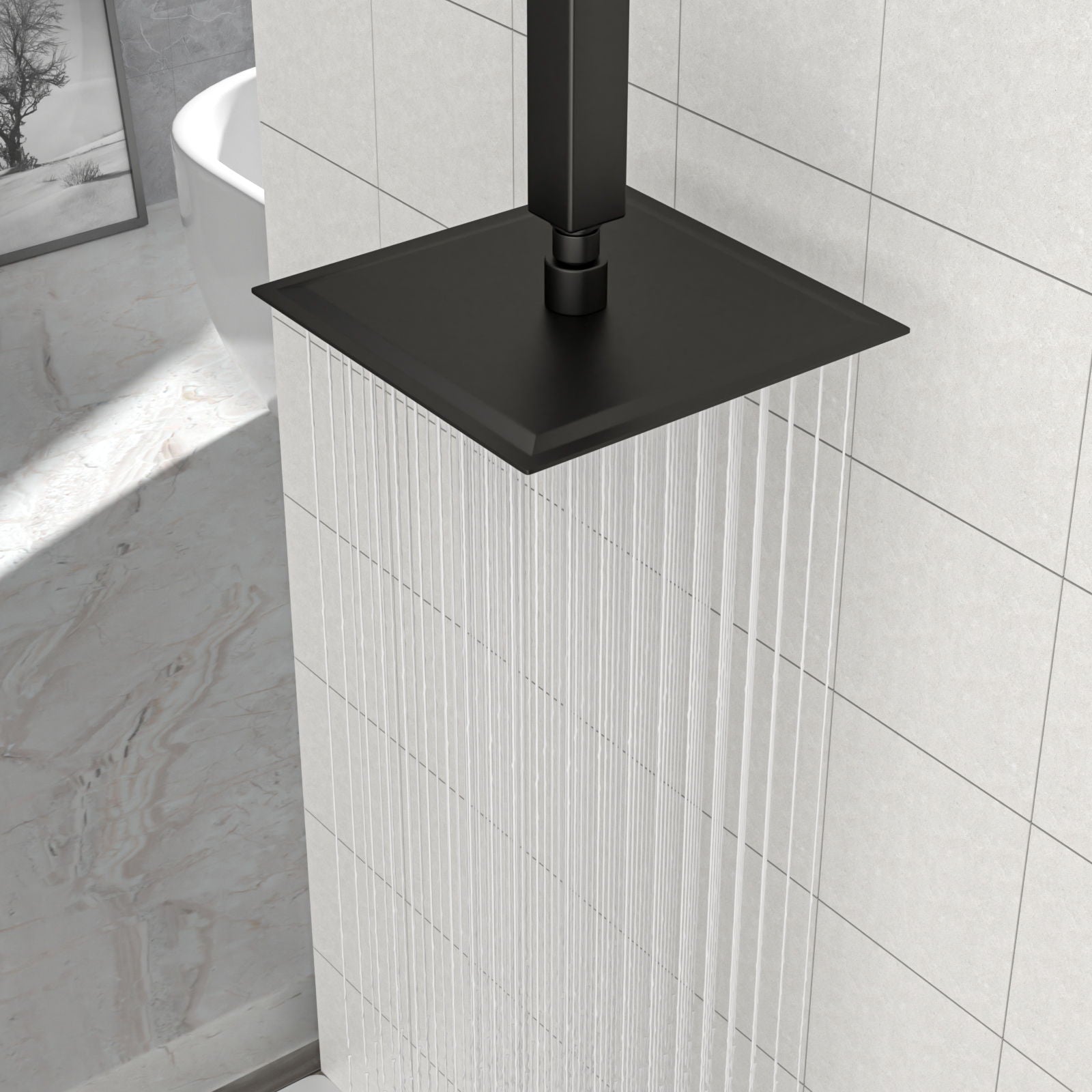 - Full Coverage: 8-inch square design provides waterfall-like full body coverage for a refreshing shower.