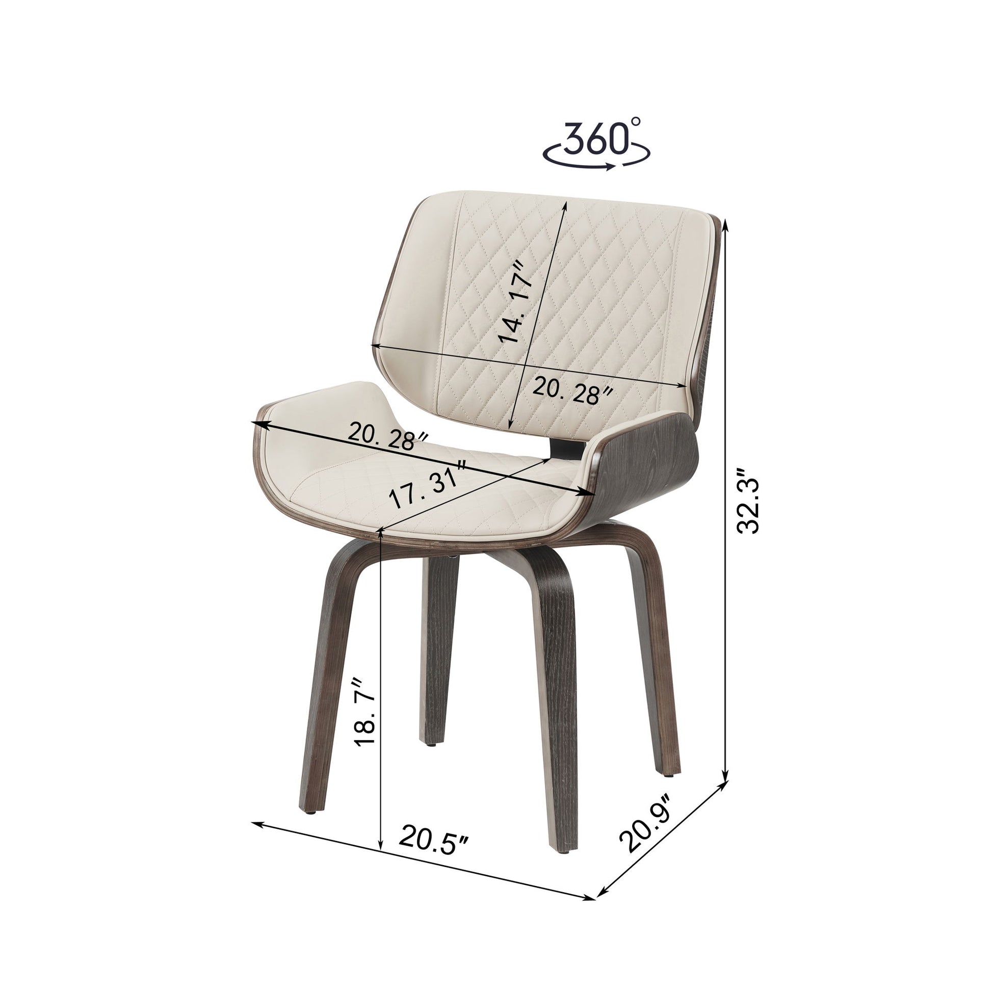 Mid Century Modern Dining Chair 360° Swivel, Ergonomic Design Upholstery, Bentwood Frame, (Set of 2) - Beige