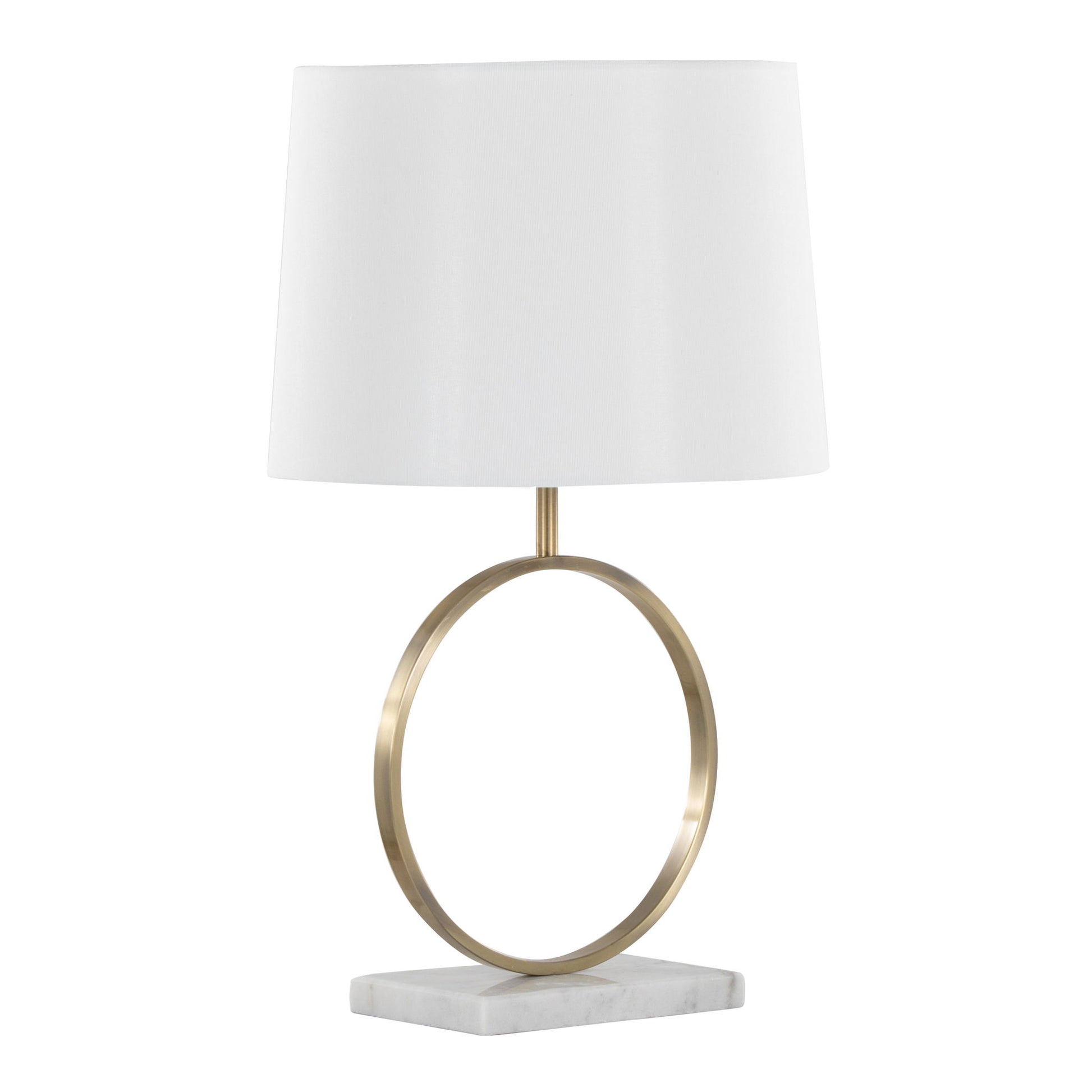 - Elegant Design: The Moon Table Lamp by LumiSource features a sophisticated design with a white marble base, circular gold metal frame, and a white linen empire shade, providing a modern and stylish accent to any desk or office area.