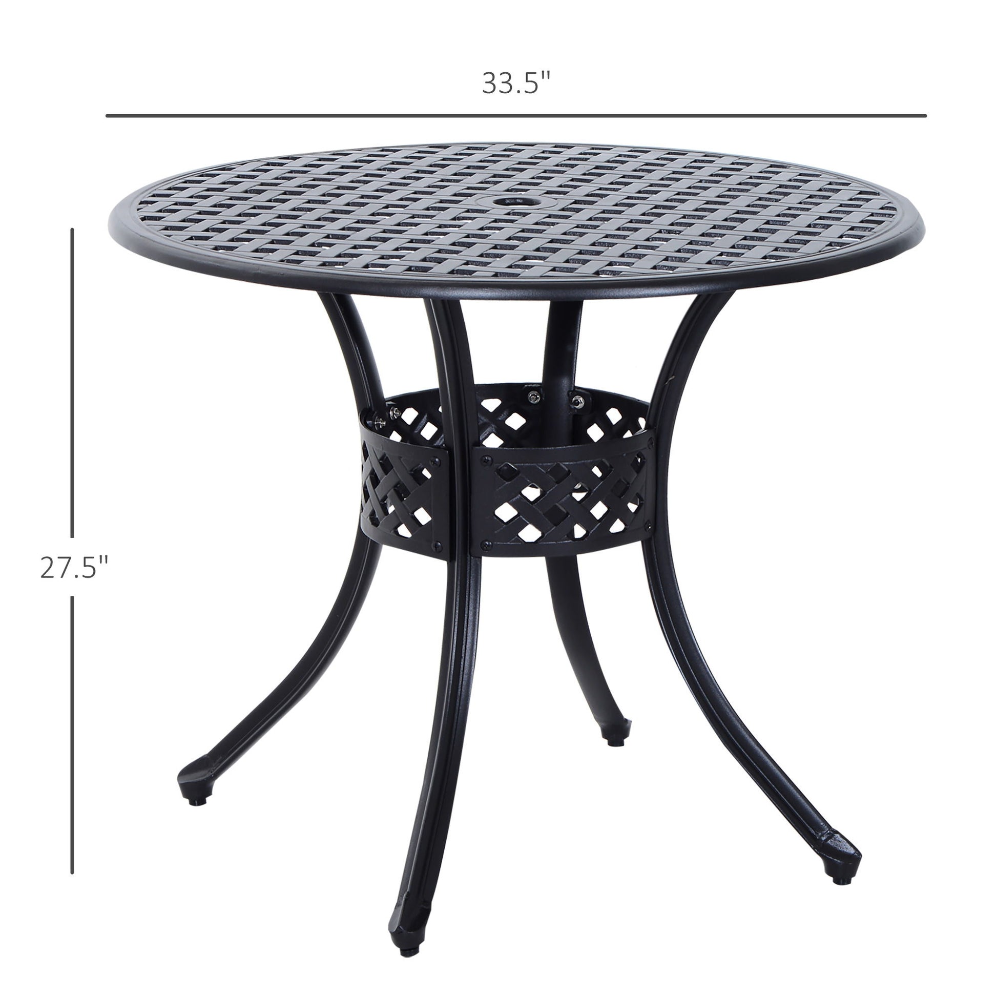 Outsunny - 33" Patio Dining Table Round Cast Aluminium Outdoor Bistro Table With Umbrella Hole - Black
