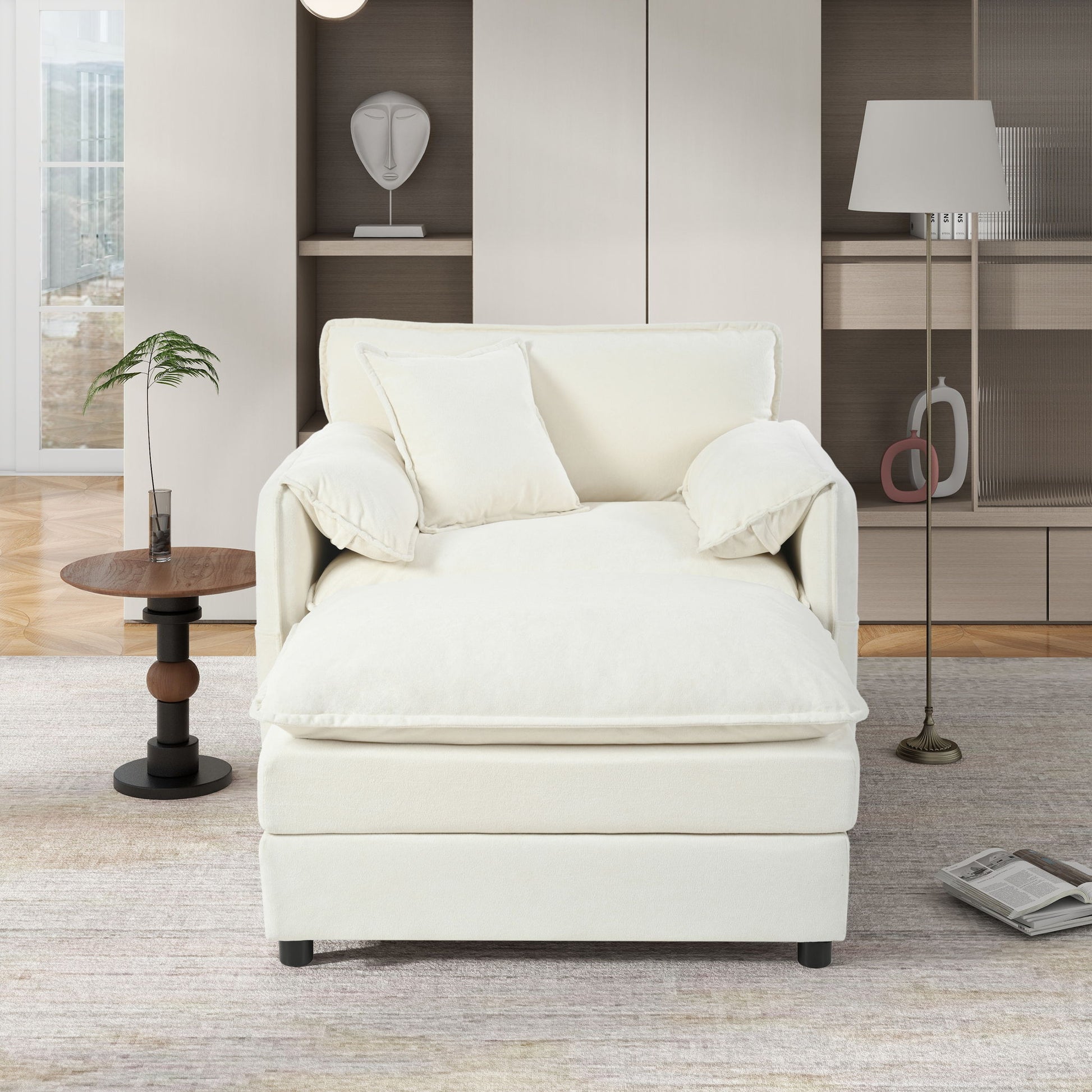 Oversized Chair With Movable Ottoman, Soft Upholstered Lounge Chair
