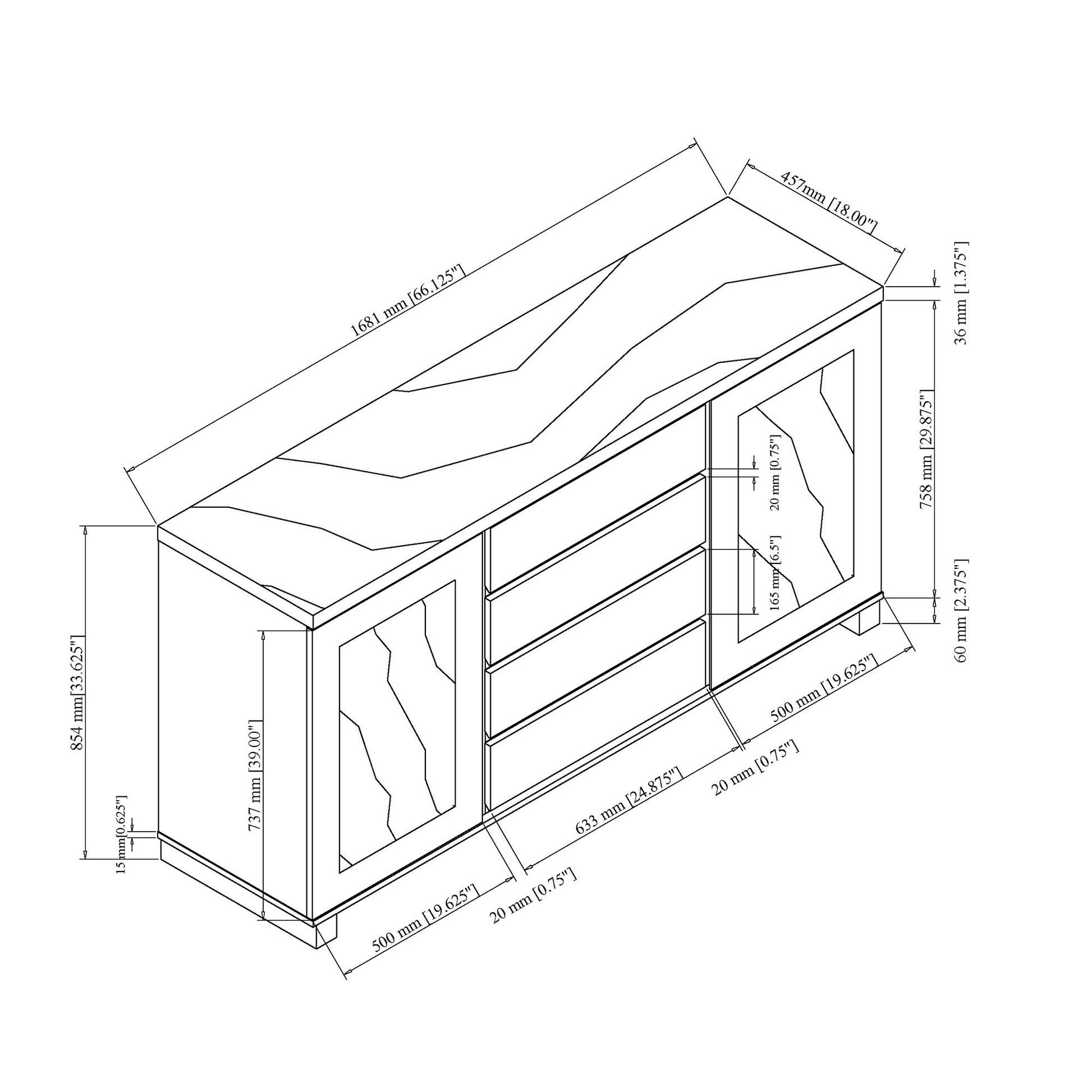 66.0"W x 18.0"D x 34.0"H - 193.73 lb
