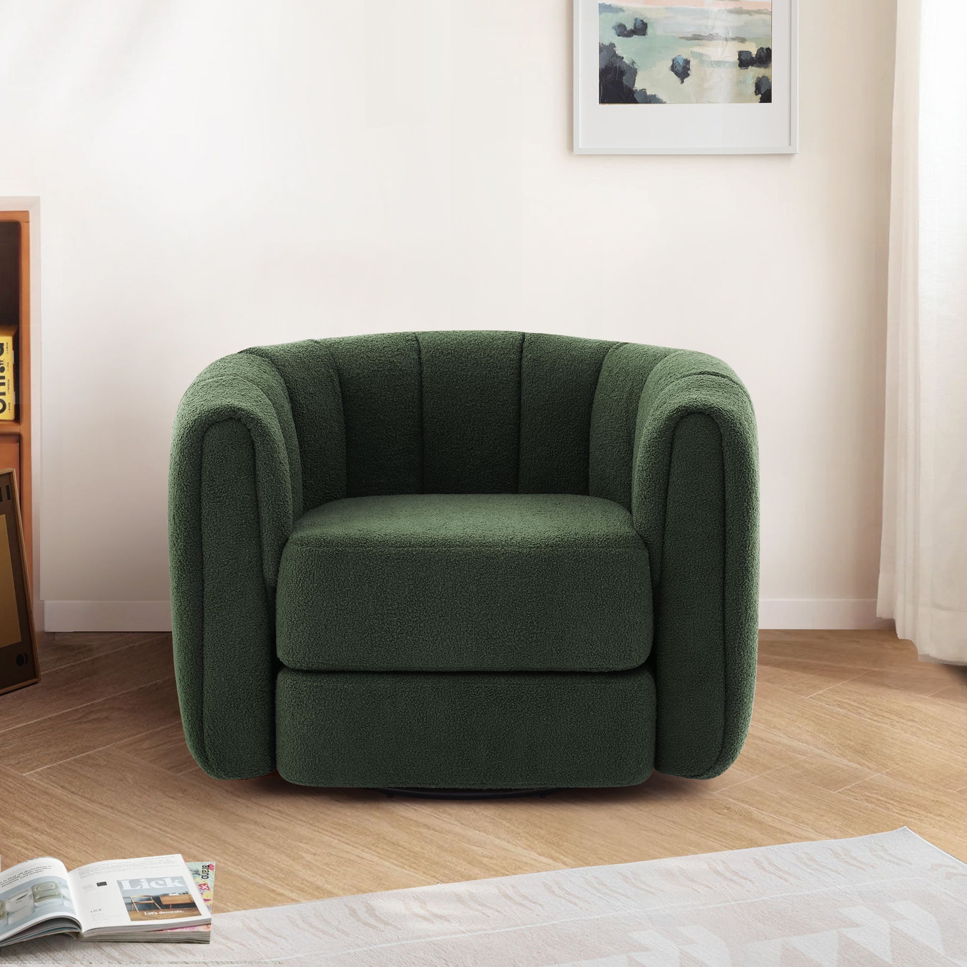- Soft Teddy Fabric: The barrel chair is upholstered in super soft, skin-friendly teddy fabric. The curved backrest and thickened seat cushion are filled with high-density sponge, ensuring an elastic and long-lasting seating experience.