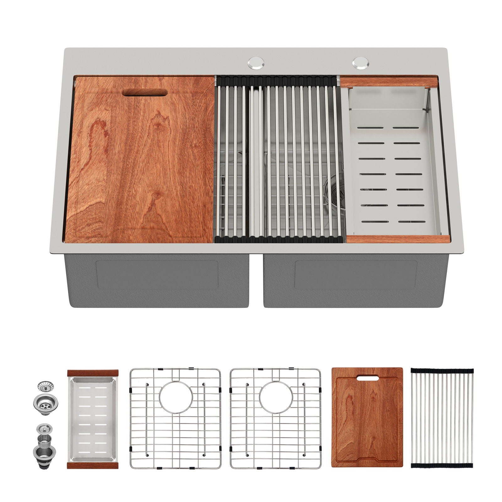 - Package Includes: Comes with dish grids, drain assemblies, drying rack, cutting board, colander, clips, template, and installation guide