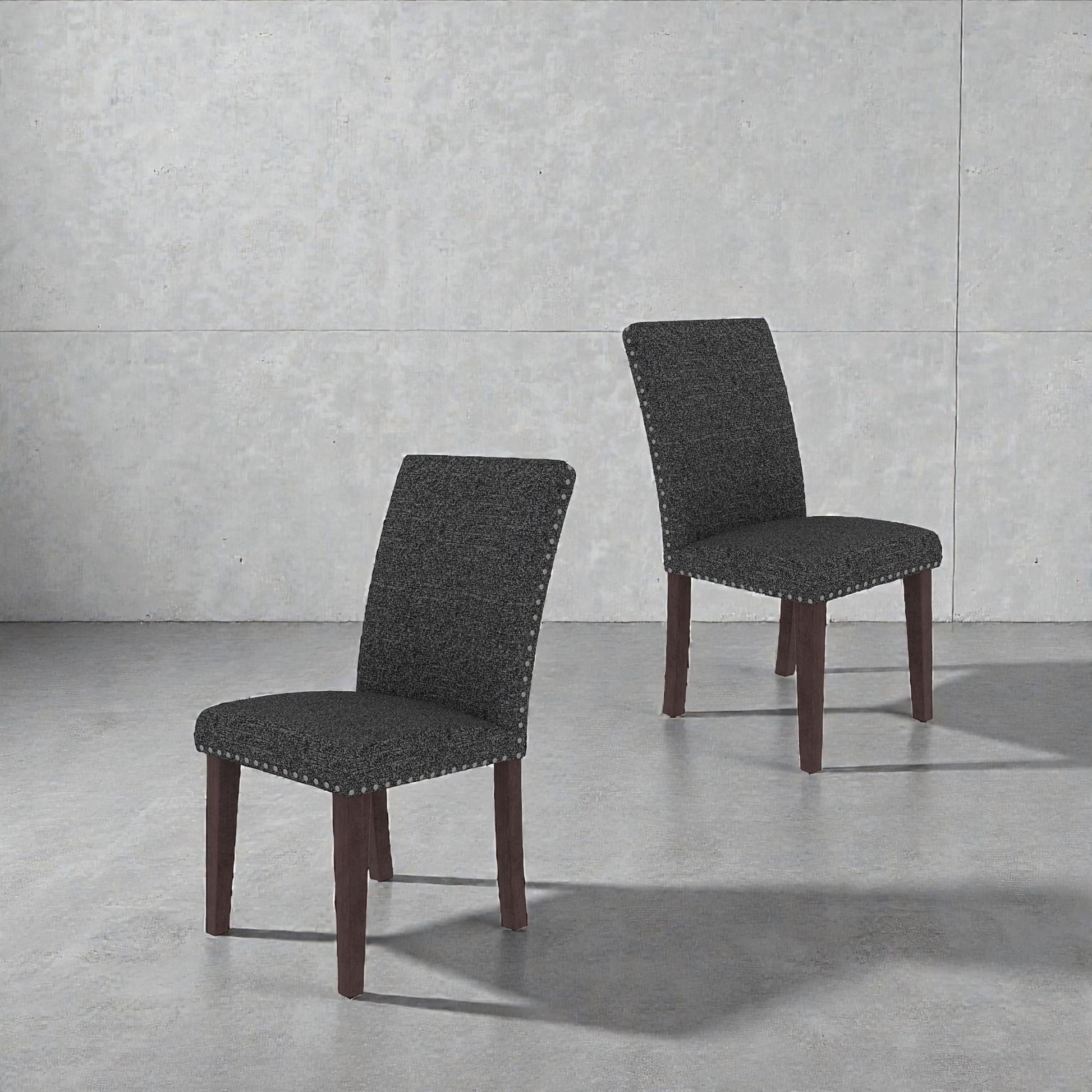 Upholstered Dining Chair With High Back Design (Set of 2) - Gray / Brown